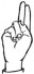 На ћирилици написано МОМИРА КЛАРИЋ састоји се из 12 слова [?]. Исписано ћириличном једноручном азбуком за глувонеме: